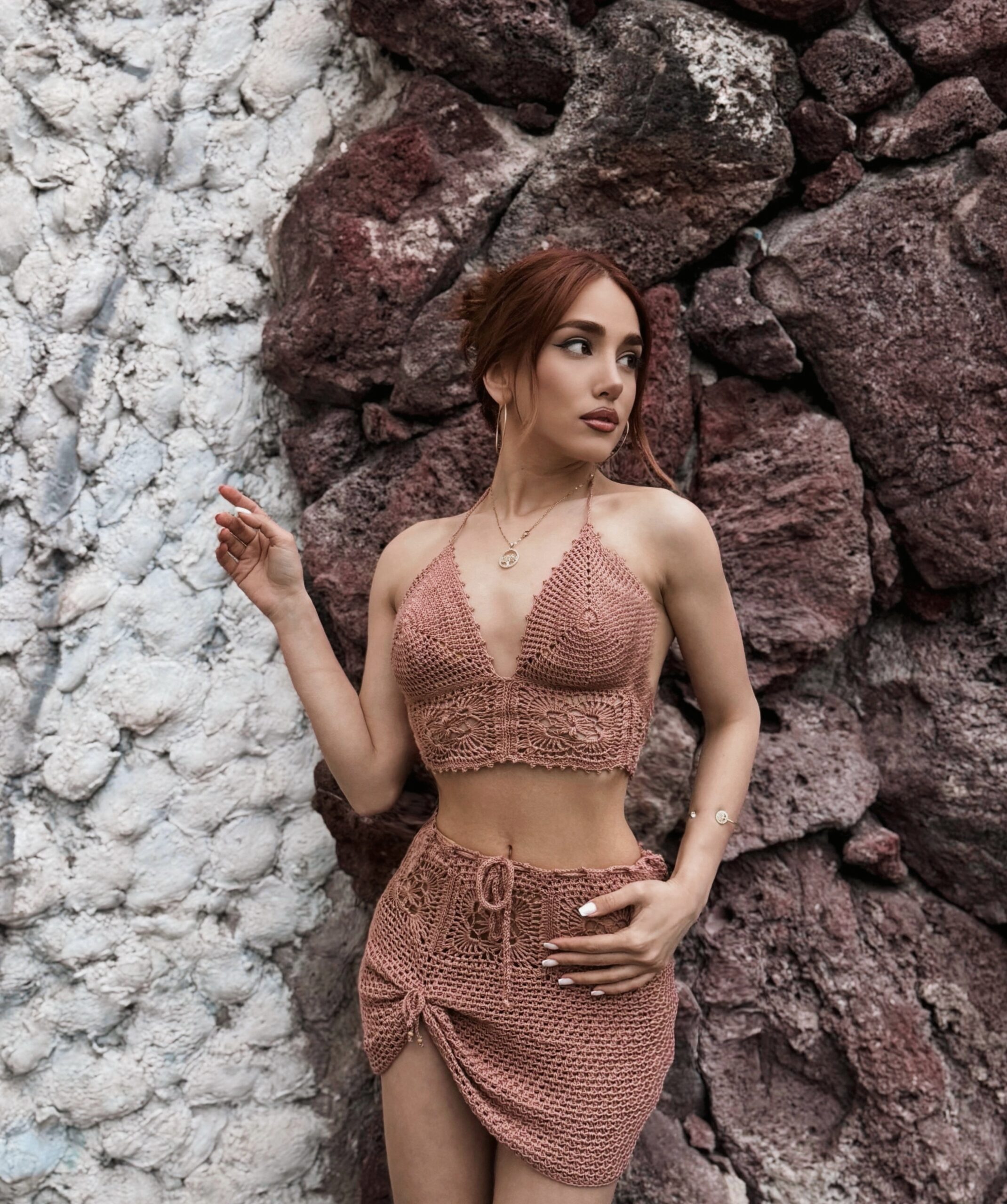 Beach set: top en rokje in gehaakte stijl – Roze