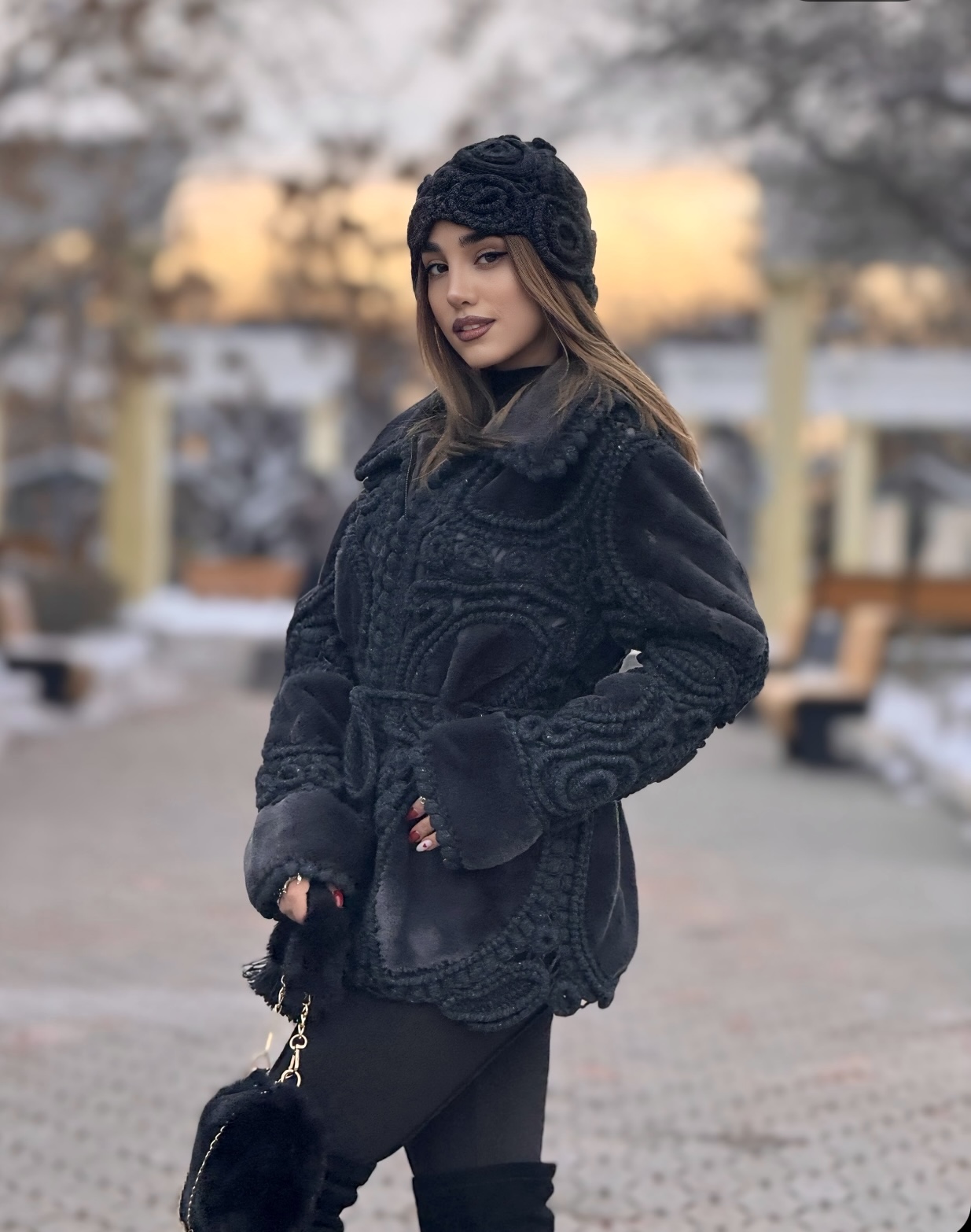 Unieke Crochet Jas met muts en Ierse kant – Zwart (M-L)