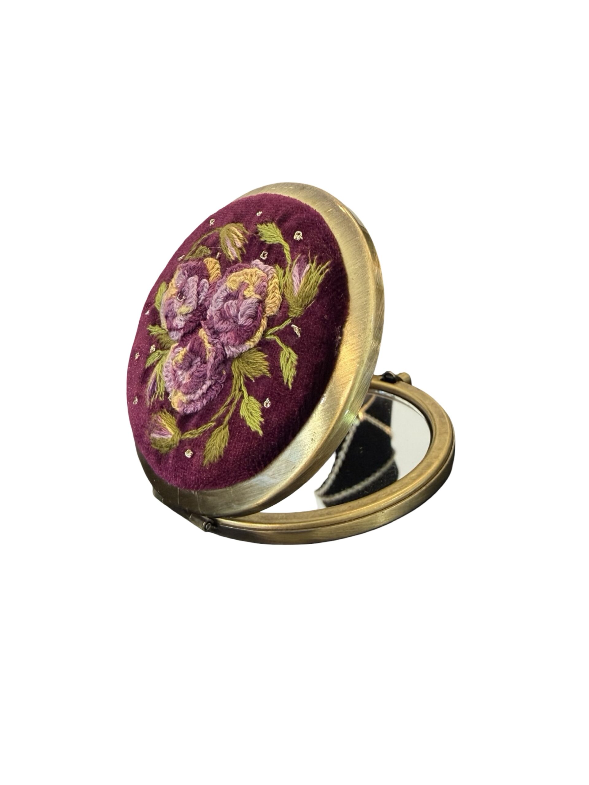Vintage & Antiek Handgemaakt Borduurwerk Spiegel – Hoge Kwaliteit Handwerk -Paars aantal