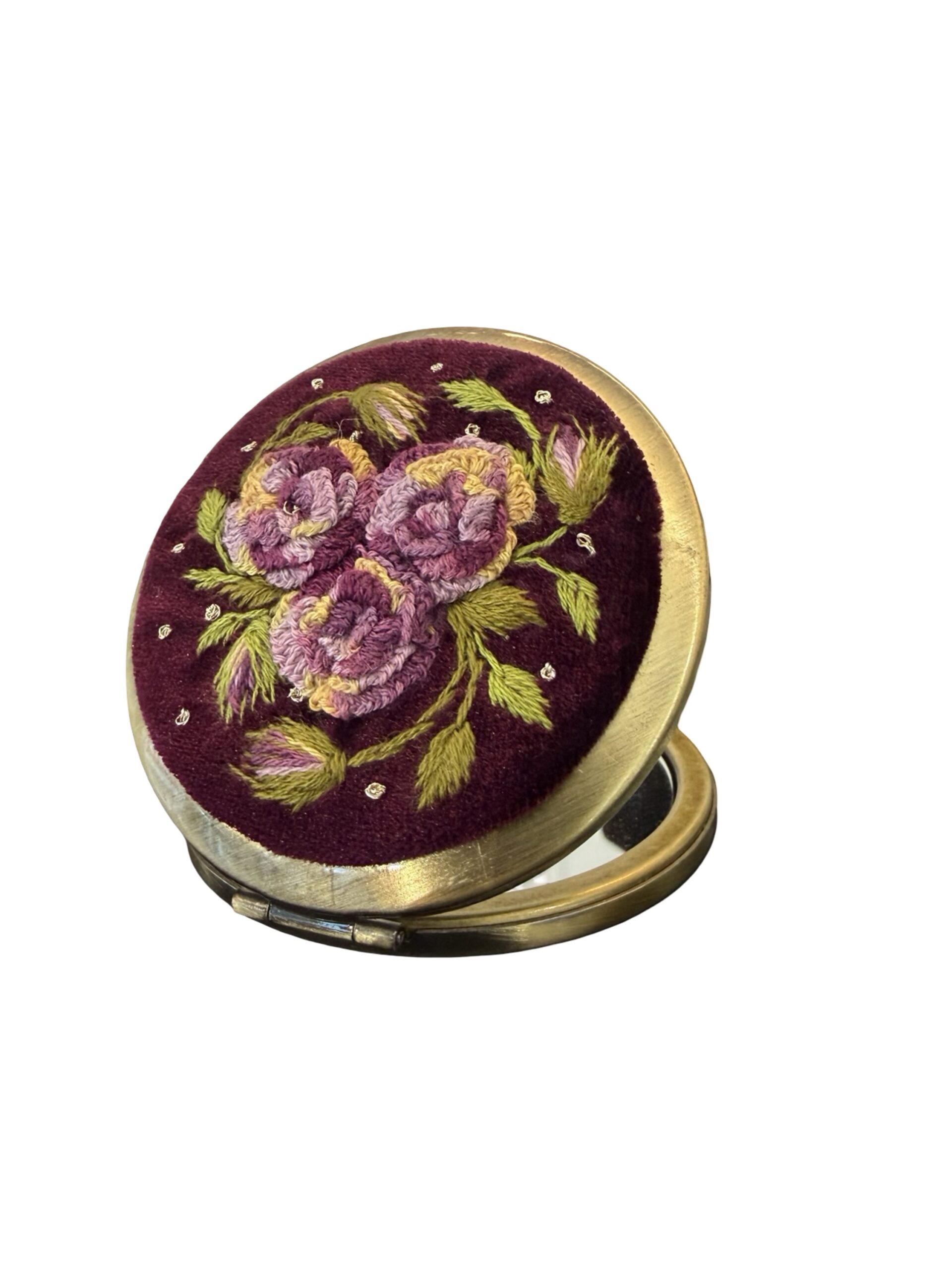 Vintage & Antiek Handgemaakt Borduurwerk Spiegel – Hoge Kwaliteit Handwerk -Paars